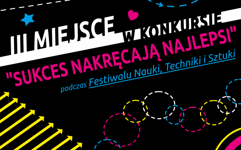 Zajęcie trzeciego miejsca w konkursie “Sukces nakręcają najwięksi”, który odbył się w czasie Festiwalu Nauki, Techniki i Sztuki w Łodzi w Manufakturze 🏆🏆🏆
